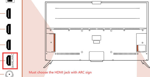 - Step 1,Turn off the soundbar and TV, connect the soundbar to your TV via HDMI ARC cable to your TV HDMI-ARC JACK( HDMI ARC cable may not supply, please use yours, and if your soundbar do not have the HDMI-ARC jack, please use optical setup according to method 1)