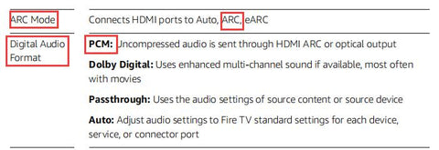 - Step 3,Turn on the TV, go to TV setting via your TV remote→select "Display and Sound"→ select "Sound Setting"→select "TV Speakers (on/off) "→ select "OFF", save settings, back to "Sound Setting"→ select "Digital Audio Format"→ select "PCM", save the setting, back to "Sound Setting"→ select"ARC mode"→"ARC",save the setting, back to TV home screen